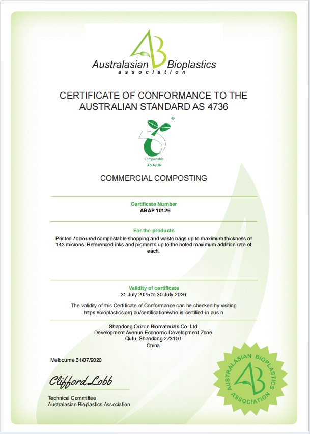 If you need AS4736 certified bags, packaging, or film, feel free to contact me. I can share certificates, product specs, and sample details to help you choose the right industrial compostable solution.