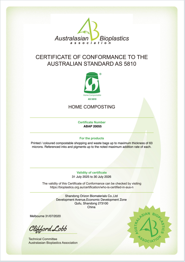 Australian commercial compostable standard—certified in accordance with AS 4736.